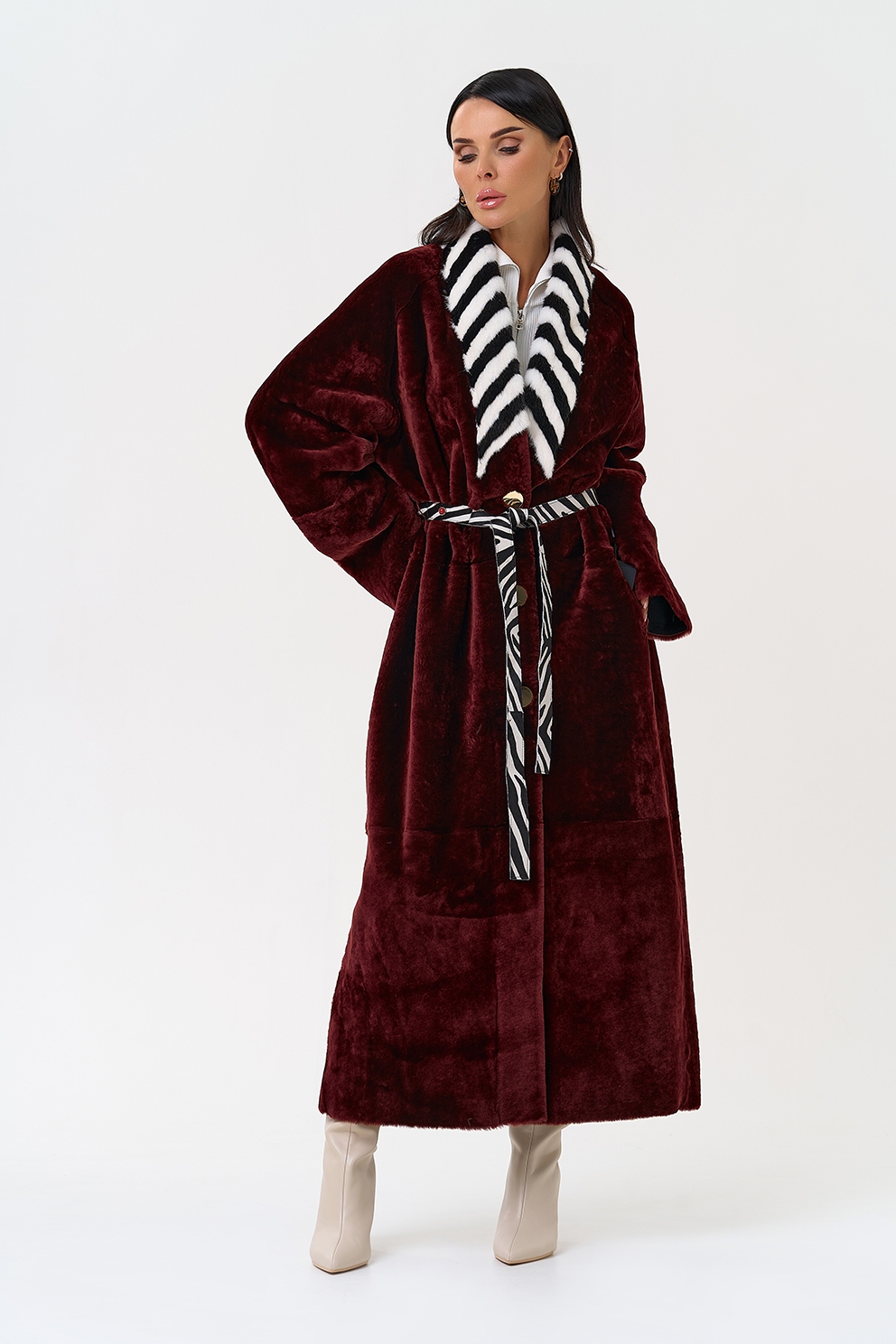 Вид застежки - кнопки, пояс из меха теленка Cavallino