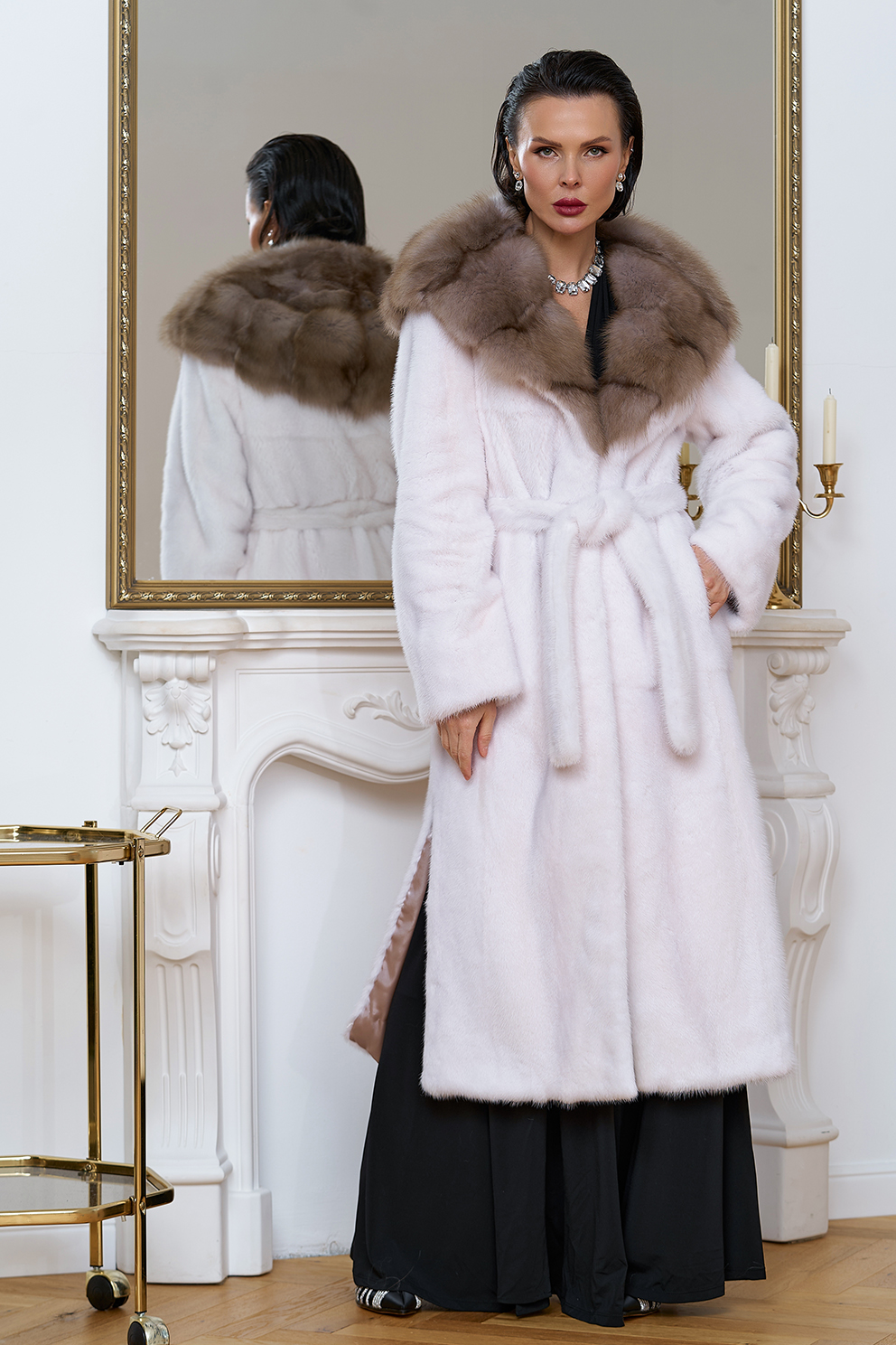 Тип ворота - капюшон, отделка куница