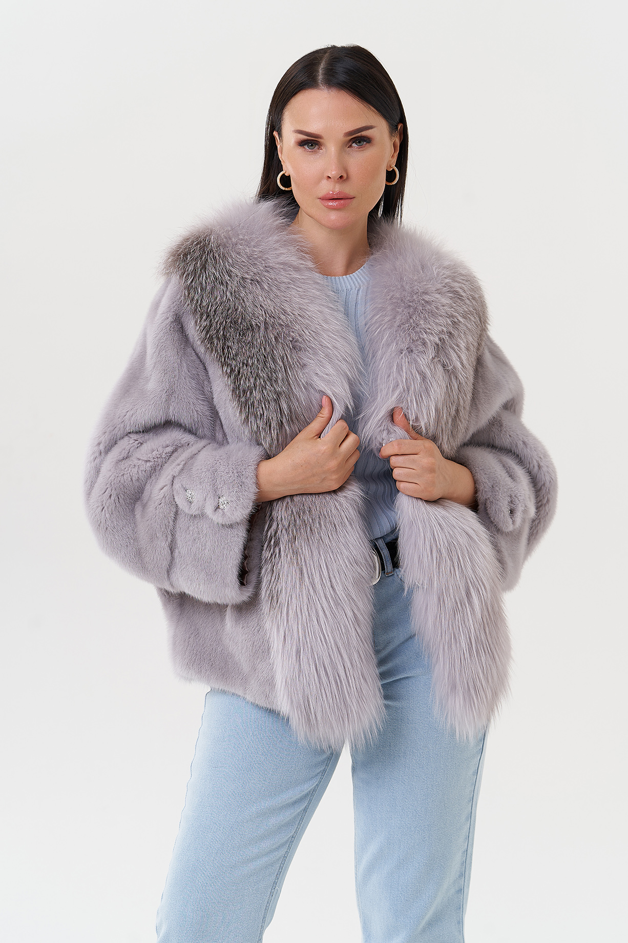 Тип ворота - V - образный воротник, отделка чернобурка